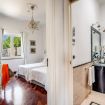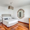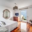 This master suite with Jacuzzi bath, large shower (1m x 1m), and two hand basins, has a gorgeous sea view and a large glass picture window, which allows you to walk directly onto the deck to enjoy the hot tub and outdoor sofas. This is a Magnolia bed by Flou Italy ( high quality Italian beds), has a custom mattress (170 cm x 210 cm), which is larger than an EU queen. You will find the 100% Egyptian cotton linens and towels to be beautifully soft and luxurious. A 47” Led Smart TV hangs on the wall, where you can enjoy watching hundreds of international channels on Sky TV.