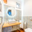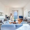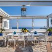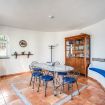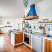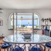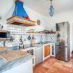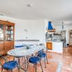 The large and beautiful kitchen (30 square metres; 323 sq. ft) can also be accessed from the patio. It is fully equipped with refrigerator/freezer, six-ring gas stove, dishwasher, wine refrigerator, pots and pans, plates and silverware, American coffee maker,Espresso coffee maker, ice machine, toaster, blender, and microwave. The kitchen is also linked to the dining area, which is furnished with a spectacularly large oval table, made of local painted Tiles and a bench built into a stone wall. Throughout the house, you can enjoy the beautiful seascape view.